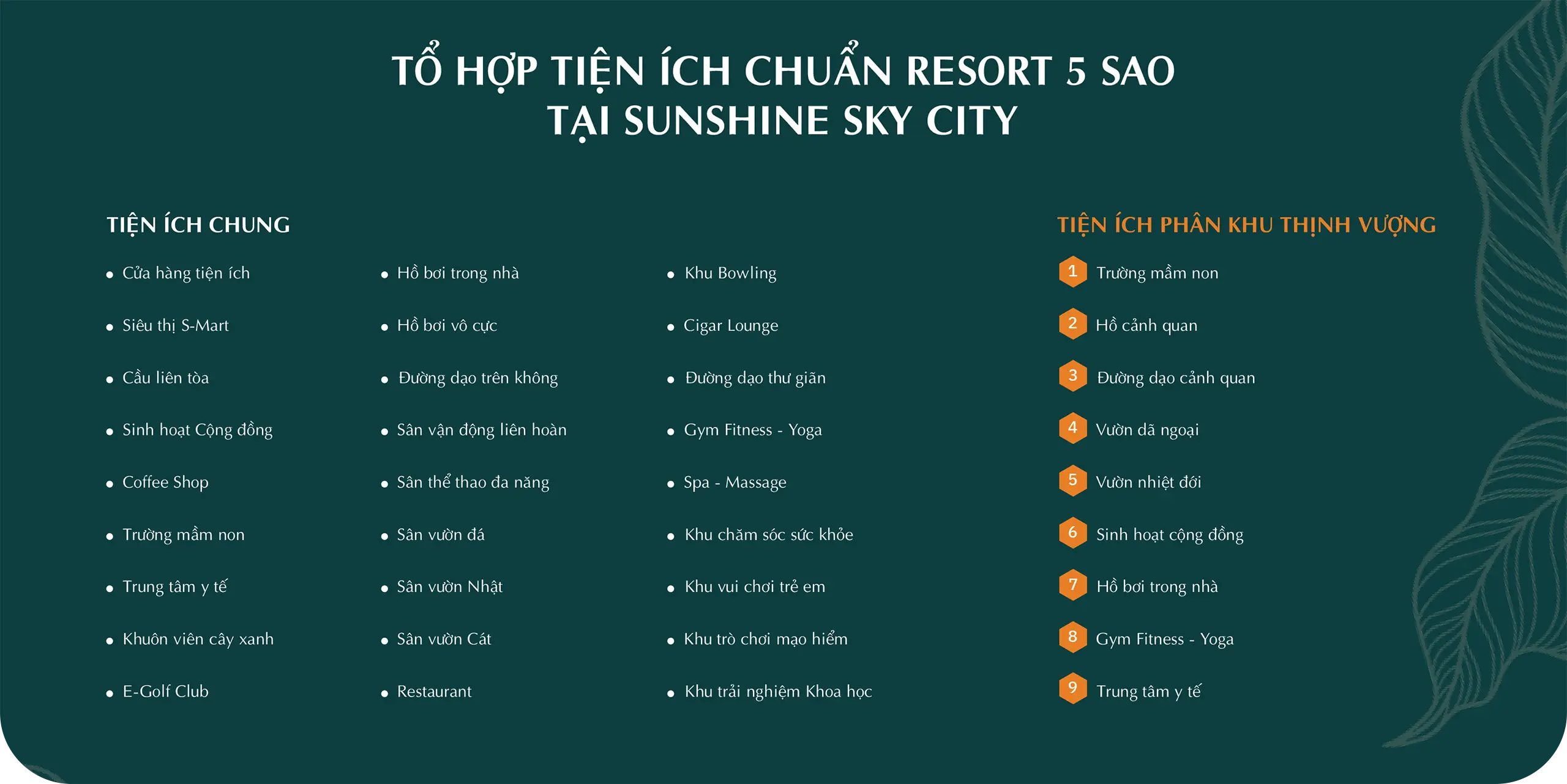 Sunshine Sky City đã thiết kế “3 cánh” cho các toà tháp để tối đa hóa tầm view tuyệt đẹp từ mọi căn hộ. Điều này giúp đảm bảo không có góc “chết”, mỗi căn hộ đều có khả năng nhìn thẳng ra khung cảnh lý tưởng. Nhờ không gian chức năng được bố trí thông minh, diện tích được tối ưu hóa, cư dân có thể thấy được sự sáng tạo và dấu ấn cá nhân trong từng căn hộ. Những không gian này không chỉ thú vị mà còn đem lại cảm giác thoải mái và ấm cúng. Sunshine Sky City chắc chắn là lựa chọn lý tưởng cho những người đang tìm kiếm không gian sống đẳng cấp và đầy đủ ánh sáng tự nhiên.